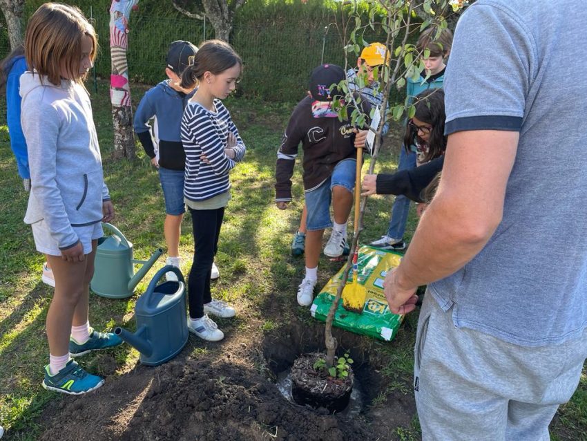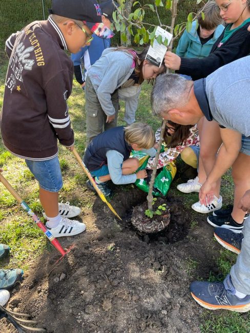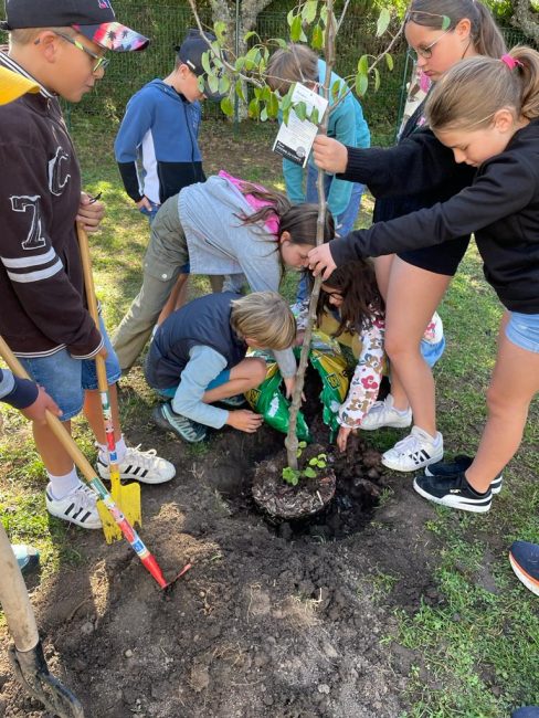Pour les CM2, c’est un poirier qui aura la chance de grandir dans la cour principal. Pour les CE2 ce sera un prunier.