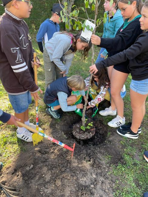 Afin de laisser une trace de notre passage dans l’école, Les élèves de CE2 et CM2 ont planté un arbre dans la cour de récréation.